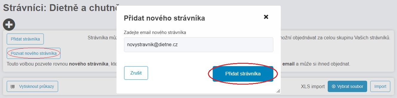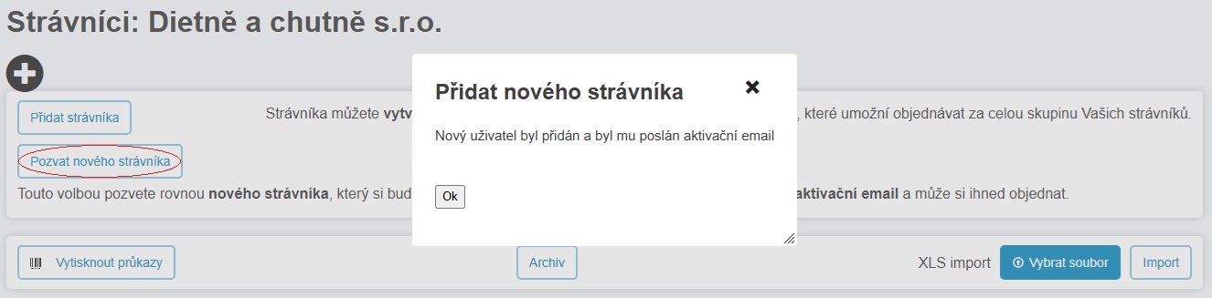 Nejjednodušší způsob je pozvat emailem. Uživatel klikne na jednorázový odkaz v mailu, nastaví si SVÉ heslo a může ihned objednat obědy. Pokud si uživatel heslo nenastaví, budete ho muset znovu do systému znovu pozvat.