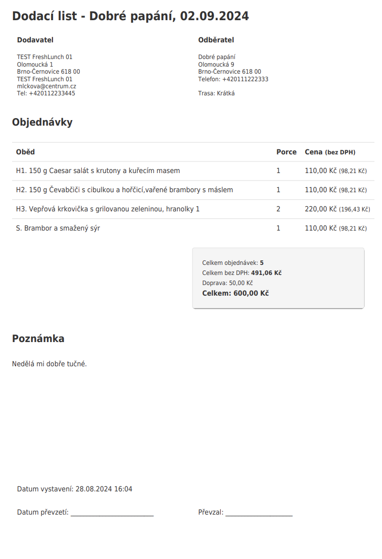 Tisk je nastavený tak, aby se každému řidiči vytiskl jeho soupis objednávek na jednu A4.