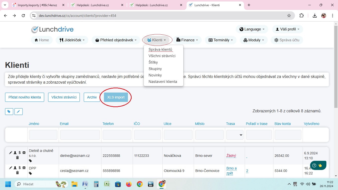 Pokud chcete do systému přidat celou skupinu zákazníků, můžete tak učinit hromadně přes import XLS.
